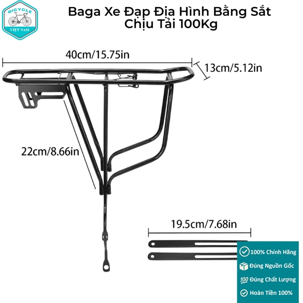 Baga Xe Đạp Địa Hình Bằng Sắt Chịu Tải 100Kg – Sơn Tĩnh Điện Màu Đen
