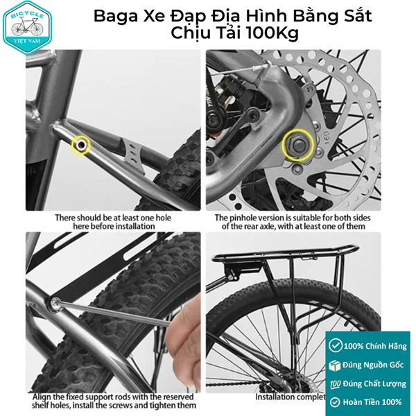 - Bắt baga vào khung sau xe bằng ốc vít nhanh, lắp đặt dễ dàng và chắc chắn.
