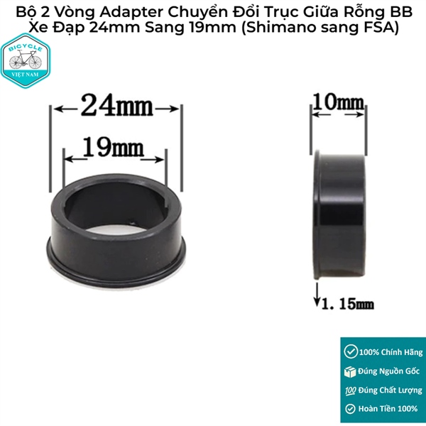 Bộ 2 Vòng Adapter Chuyển Đổi Trục Giữa Rỗng BB Xe Đạp 24mm Sang 19mm (Shimano sang FSA)