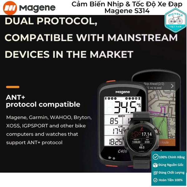 Cảm Biến Nhịp & Tốc Độ Xe Đạp Magene S314 Kết Nối ANT+ / Bluetooth 5.0