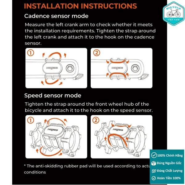 - Dễ dàng lắp đặt: gắn vào trục bánh xe (speed) hoặc tay quay (cadence) với dây chống rơi tiện lợi.