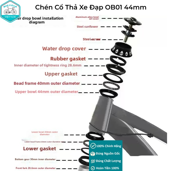Chén Cổ Thả Xe Đạp OB01 44mm - Vòng Bi: Sự Lựa Chọn Tối Ưu Cho Mọi Dòng Xe