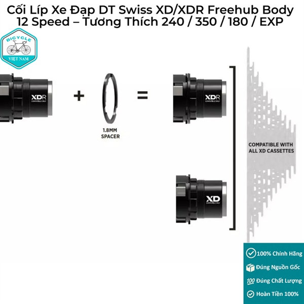 - Tương thích: Moay-ơ DT Swiss 180 / 240 / 350 / EXP, hệ thống Ratchet 36T