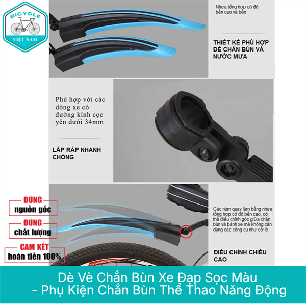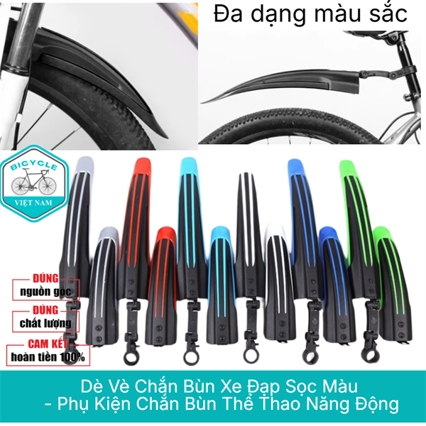 Dè Vè Chắn Bùn Xe Đạp Nhựa Sọc Màu Thể Thao - Nhiều Màu Lựa Chọn Dễ Lắp Đặt - Bộ