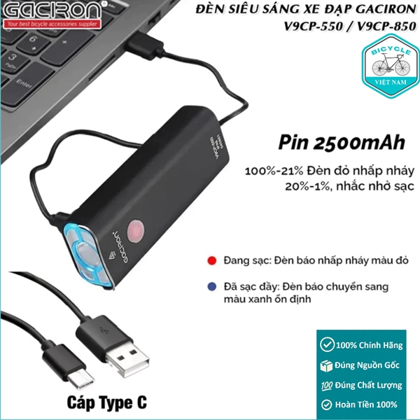 Đèn Xe Đạp Siêu Sáng GACIRON V9CP-550 (550LM) / V9CP-850 (850LM)