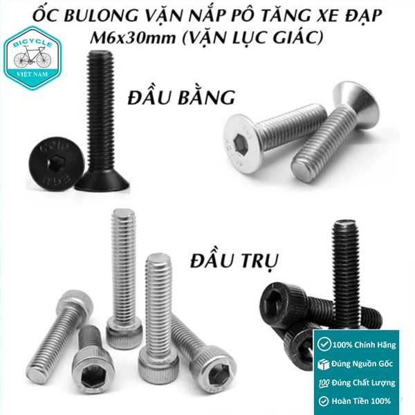 Set 2 Ốc Vít Bulong Vặn Nắp Pô Tăng Xe Đạp M6x30mm