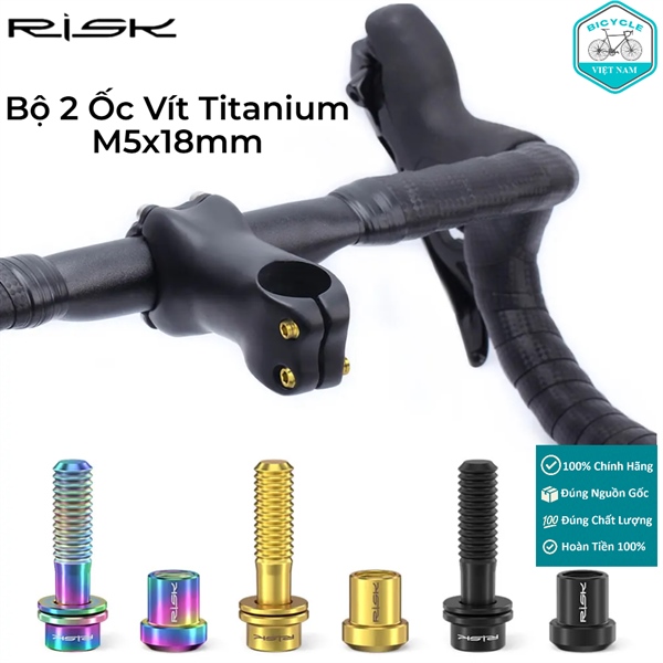 Bộ 2 Ốc Vít Titanium Cho Pô Tăng Xe Đạp RISK M5x18mm – Siêu Nhẹ, Chống Gỉ