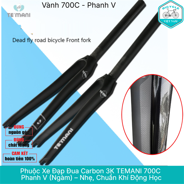 Phuộc Xe Đạp Đua Carbon 3K TEMANI 700C – Đen Mờ