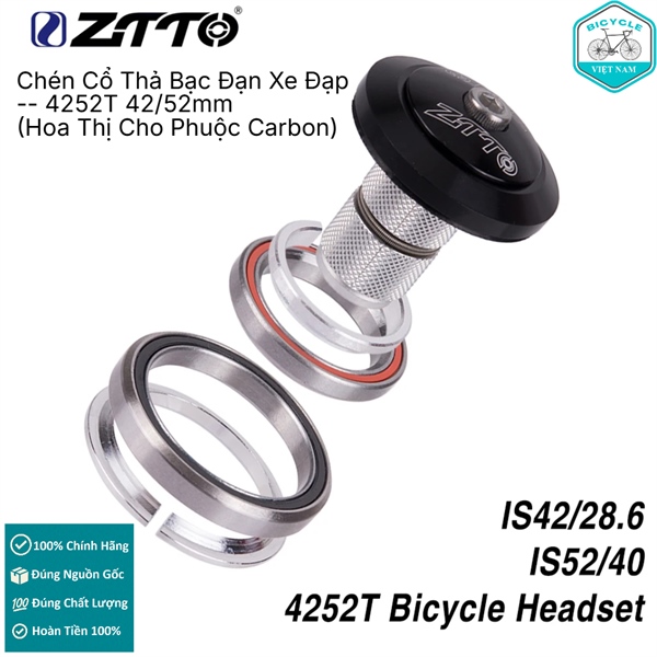 Chén Cổ Bát Phốt Thả Bạc Đạn Xe Đạp ZiTTO 4252ST 42/52mm – Hợp Kim Nhôm CNC, Cho Xe Cổ Thả