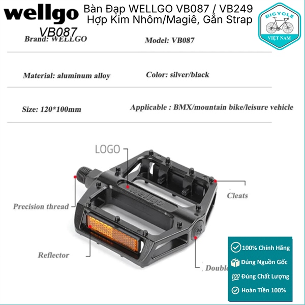 Bàn Đạp Xe Đạp WELLGO VB087 / VB249 – Hợp Kim Nhôm/Magiê, Gắn Strap