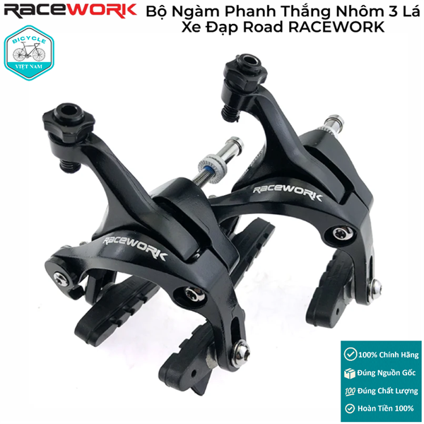 Bộ Ngàm Phanh Thắng Nhôm 3 Lá Xe Đạp Road RACEWORK – Nhẹ, Bền, Ăn Phanh Chuẩn, An Toàn Tối Ưu