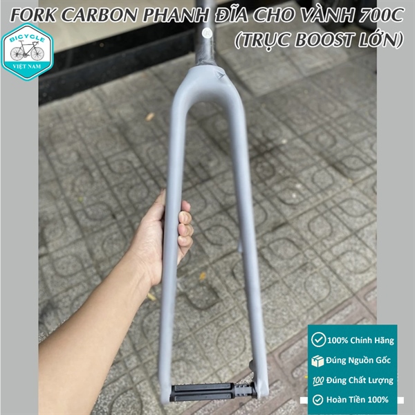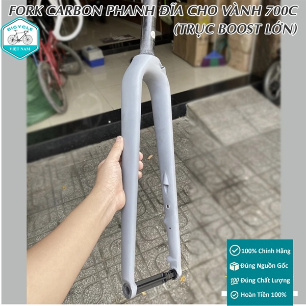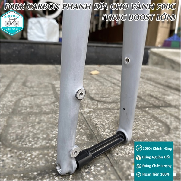 Phuộc (Fork) Xe Đạp Đua Carbon T800 (No Name) - Phanh Đĩa Trục Lớn Boost (Mới Sơn Lót)
