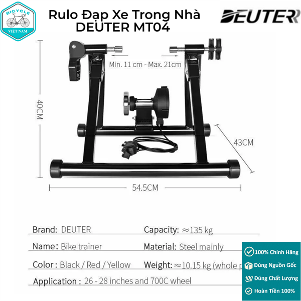 Rulo Đạp Xe Trong Nhà DEUTER MT04 – Có Dây Phanh Điều Chỉnh Độ Nặng, Gấp Gọn Tiện Lợi - Bộ