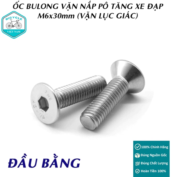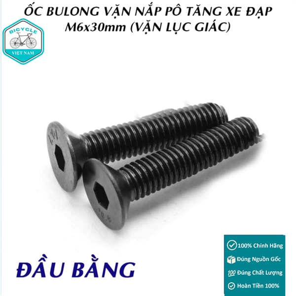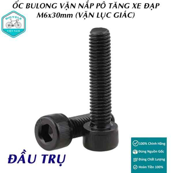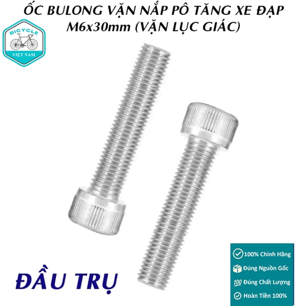 Set 2 Ốc Vít Bulong Vặn Nắp Pô Tăng Xe Đạp M6x30mm
