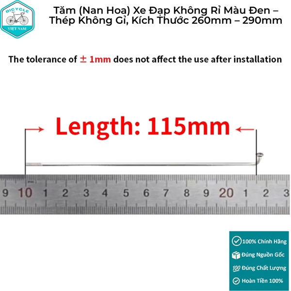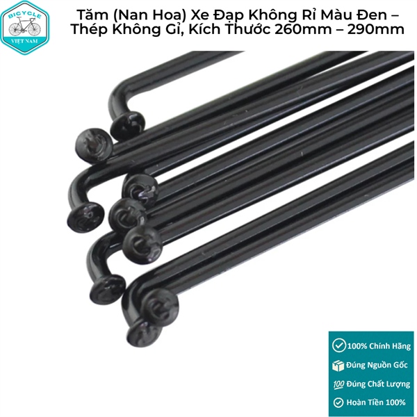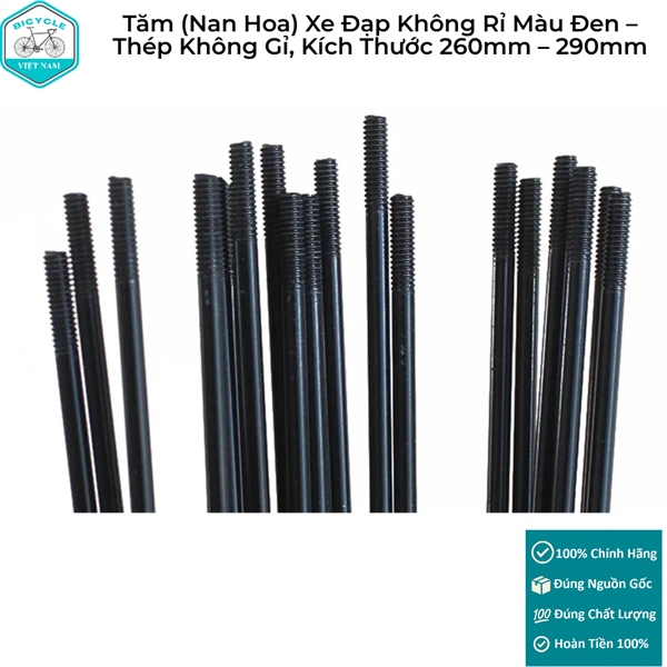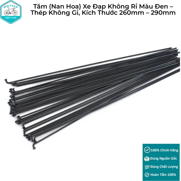 Tăm (Nan Hoa) Xe Đạp Không Rỉ Màu Đen – Thép Không Gỉ, Kích Thước 260mm – 290mm