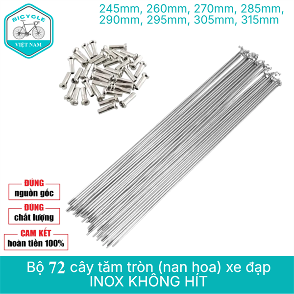 Bộ 72 Cây Tăm Tròn (Nan Hoa) Xe Đạp INOX Không Hít – Chống Gỉ, Bền Bỉ
