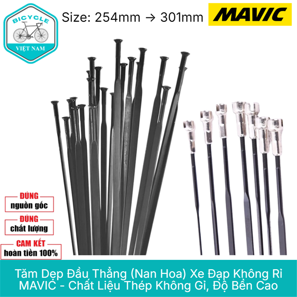 Tăm Dẹp Đầu Thẳng (Nan Hoa) Xe Đạp Không Rỉ MAVIC – Thép Không Gỉ, Độ Bền Cao