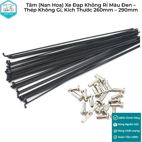 Tăm (Nan Hoa) Xe Đạp Không Rỉ Màu Đen – Thép Không Gỉ, Kích Thước 260mm – 290mm