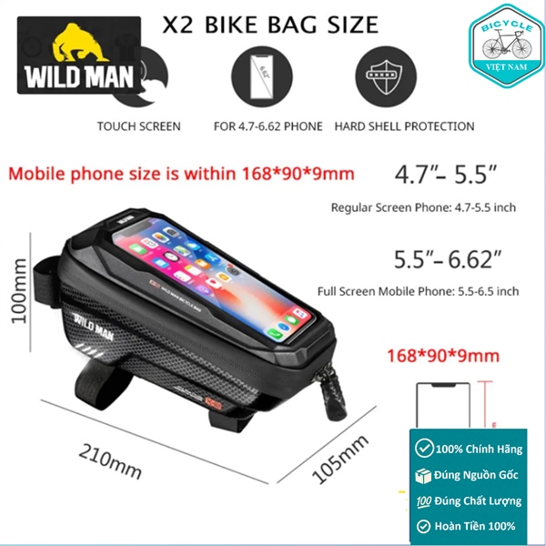 Túi Treo Khung Sườn Hộp Cứng Xe Đạp WILD MAN X-2 Có Ngăn Điện Thoại