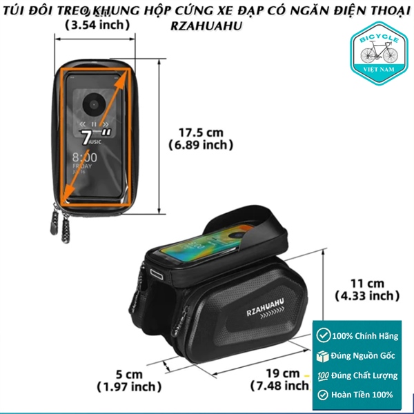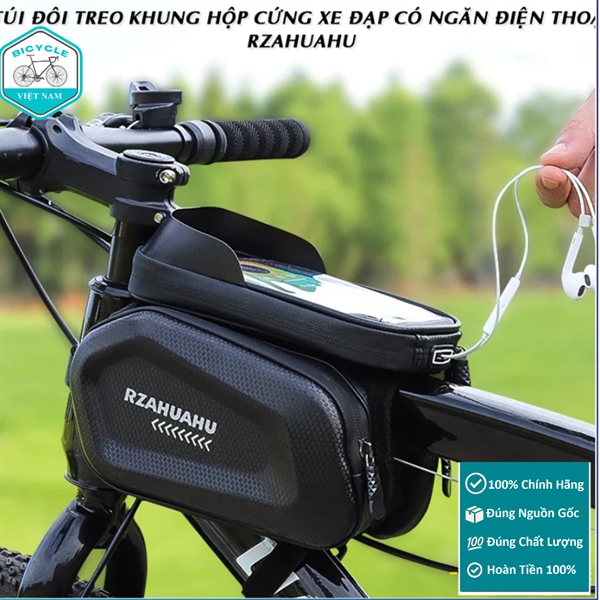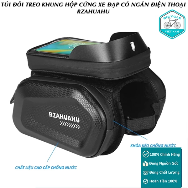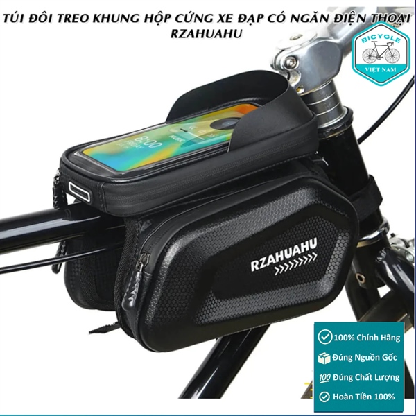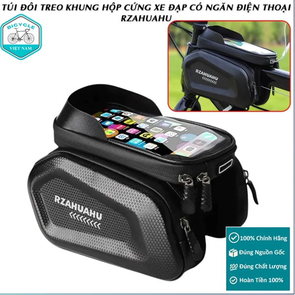 Túi Treo Khung Sườn Xe Đạp RZAHUAHU Hộp Cứng 2 Ngăn – Kèm Ngăn Điện Thoại Chống Mưa