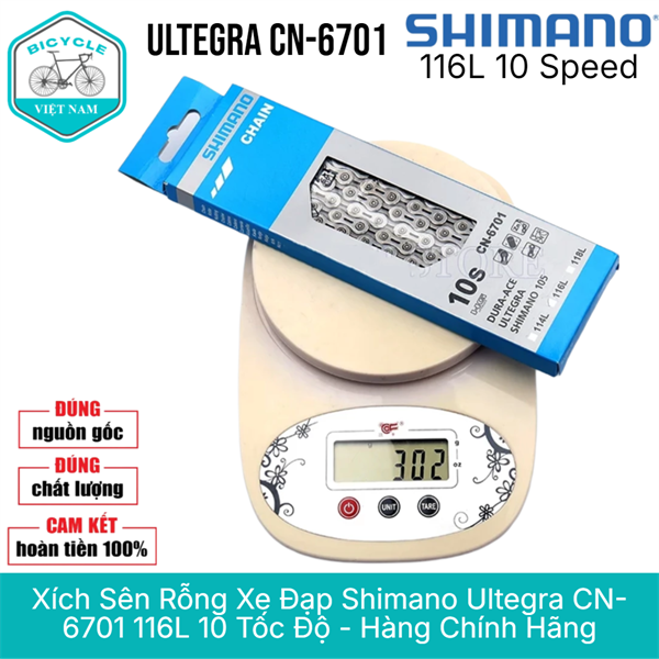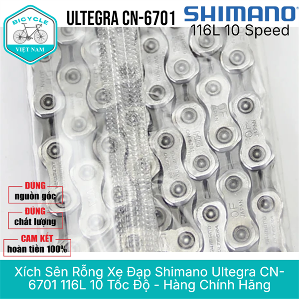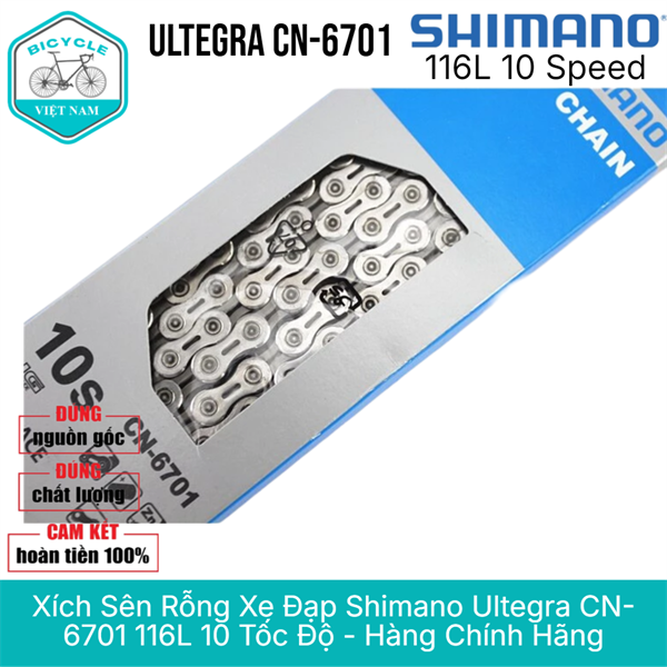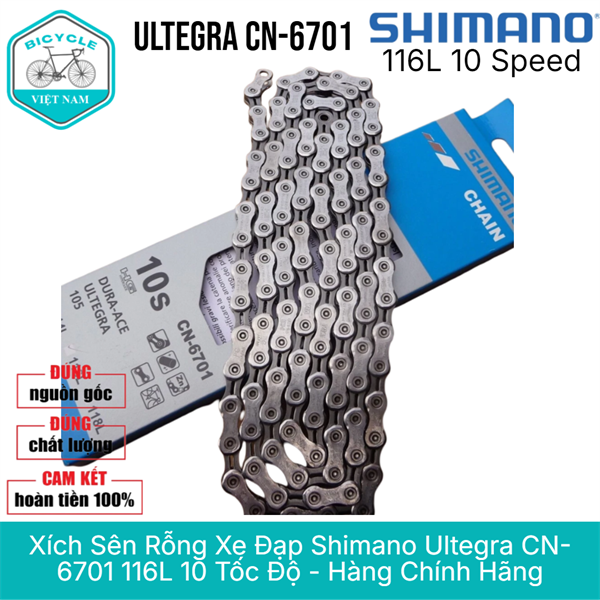 - Xích sên rỗng Shimano Ultegra CN-6701 thiết kế siêu hẹp, tối ưu cho các hệ thống 10 tốc độ, sang số mượt và chính xác.